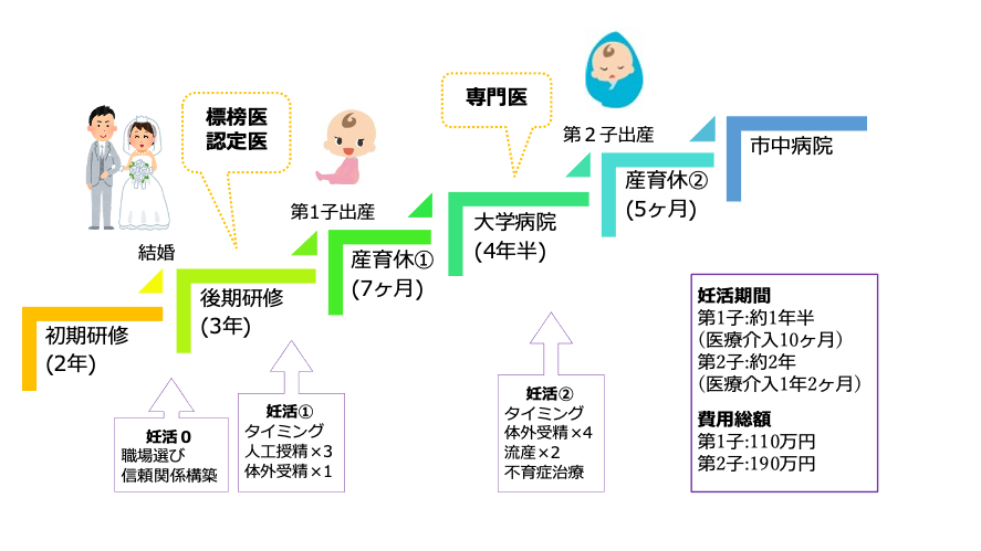 妊活を経て二児を出産し、現在、育児をしながら市中病院に勤務。